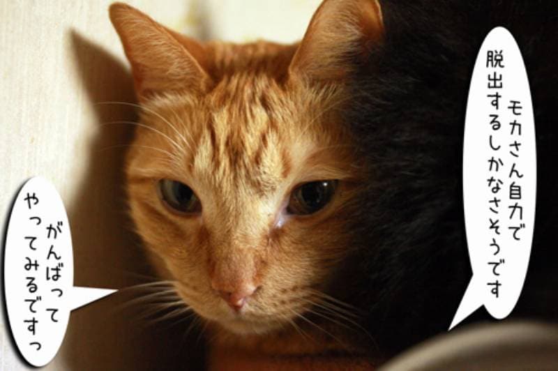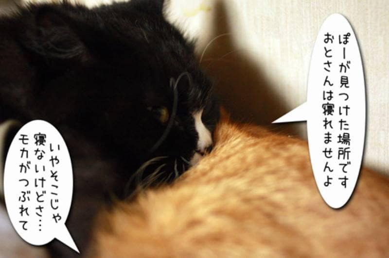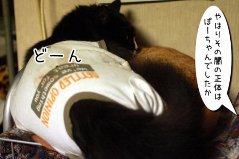 モカがお気に入りの場所で気持ちよく寝ていると、なんだか黒い闇が迫ってきました。