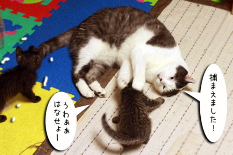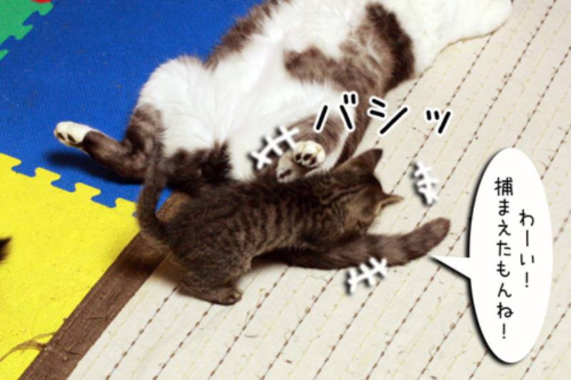 ムギよ…そうやって子猫捕まえるのおよしなさい。見ていたチビさんおびえているから…