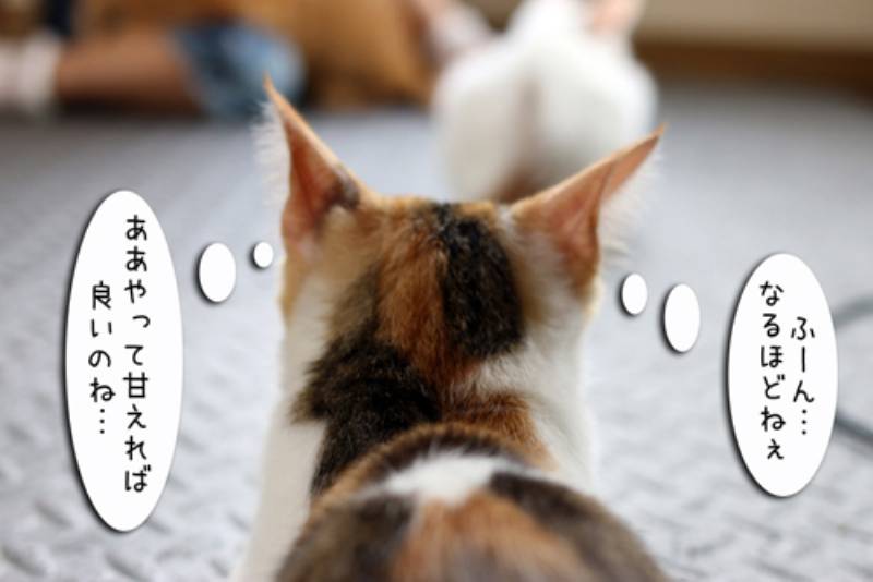 ボブテイルくんはその様子を真剣に勉強しています。ミケままちゃんも興味津々。
