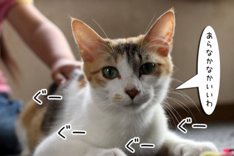 さっそくモカ先生に教わった甘えかたをしてみます。なんだか心地いいことを学んだミケままちゃんなのでした。