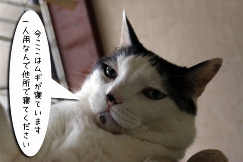 どうやらぽーちゃんは一緒に寝たいようですがどうみてもムギで満員です。