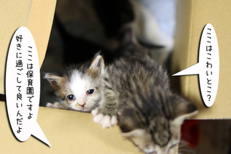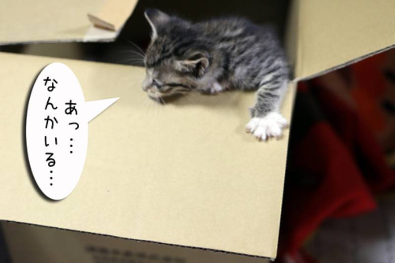 今年も捨てられた子猫たちが我が家に保護されてきました。ダンボールから出てきた子猫さんたちは初めて大人猫に会いました。