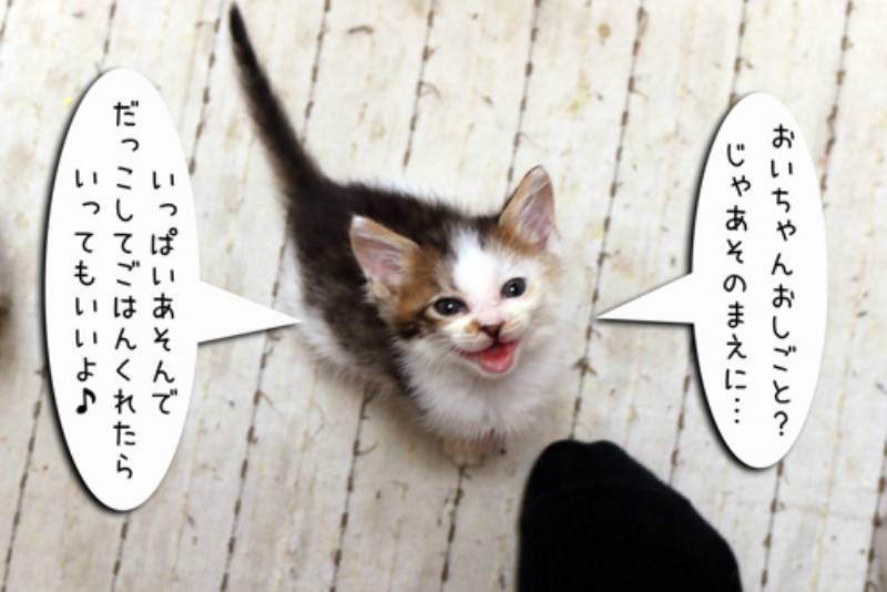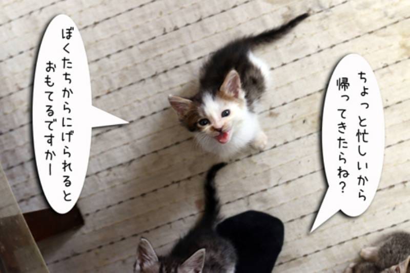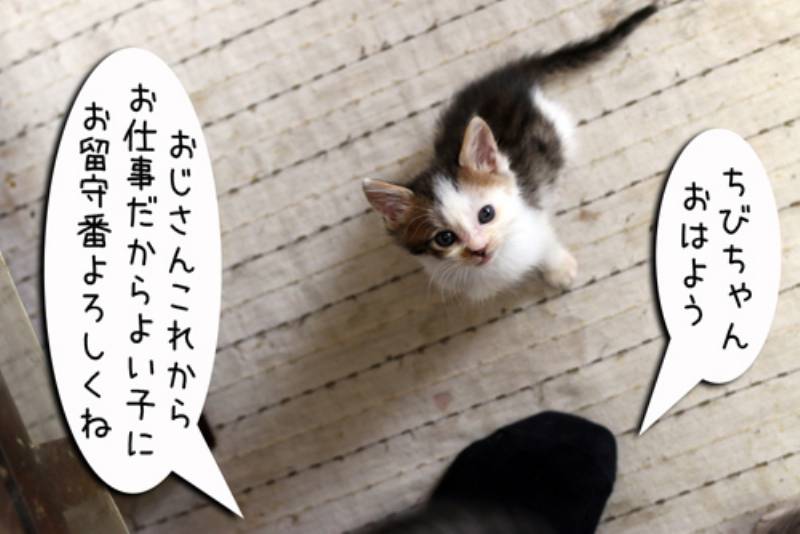 朝の支度をしていると足元にちびちゃんが来ました。忙しいから帰ってからねとお願いするもチビッコギャング達には受け入れてもらえません。