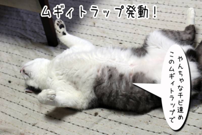 我が家に保護された子猫は必ず受ける洗礼があります。そうです。ムギィトラップです。