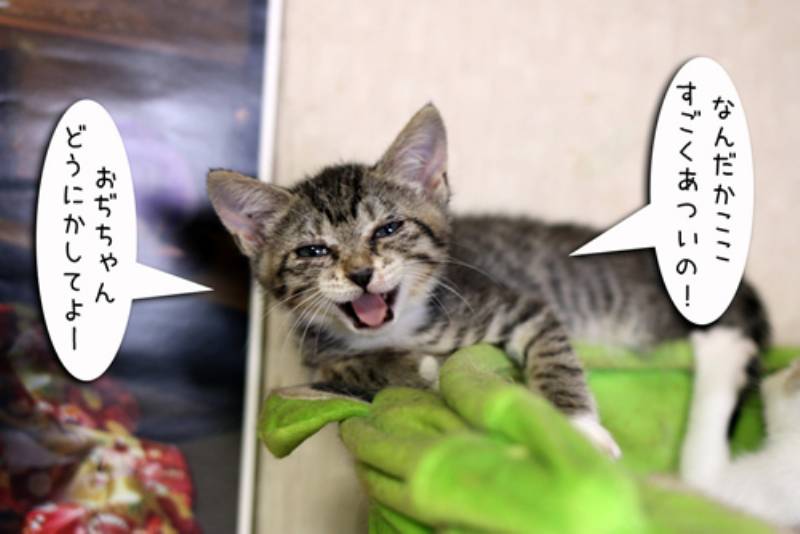 何か子猫が訴えている。どうやら暑くて助けをもとめているようです。