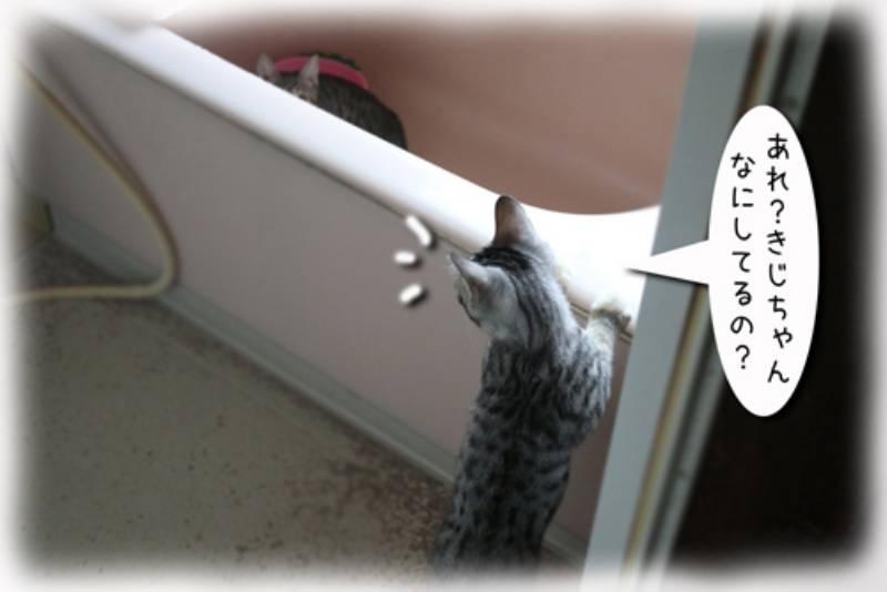 それを見ていたサバトラ君。今日は僕がと飛び込んだ模様です。
