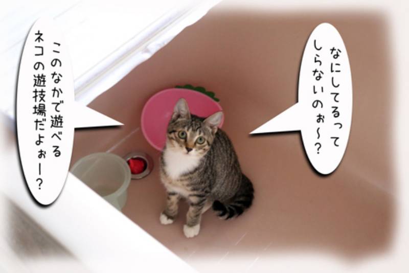 昨日はお水が無かったのでキジトラちゃんが中で楽しそうに遊んでいました。
