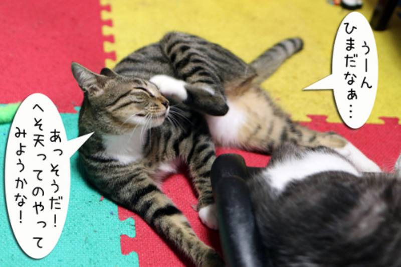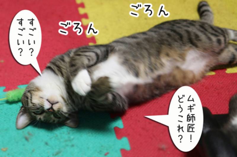 暇な子猫さん、ヘソ天のポーズにチャレンジすることにしました。
