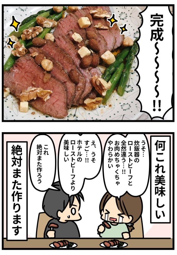 「低温調理器で作ったローストビーフめちゃくちゃ美味しいですね!?」