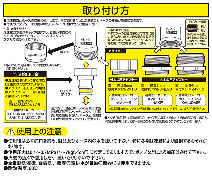 ●適合サイズ:【適合蛇口口径】泡沫蛇口21mm